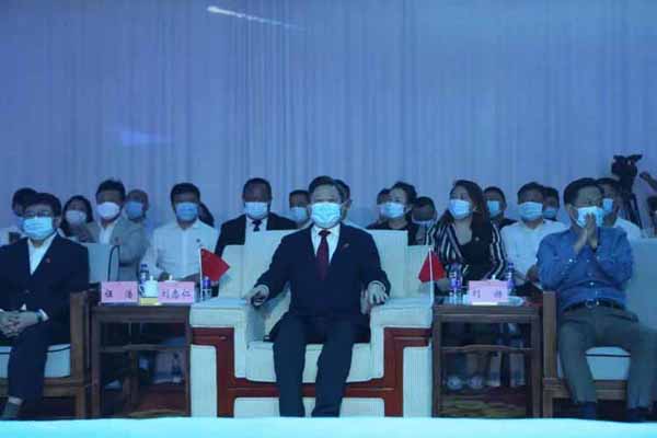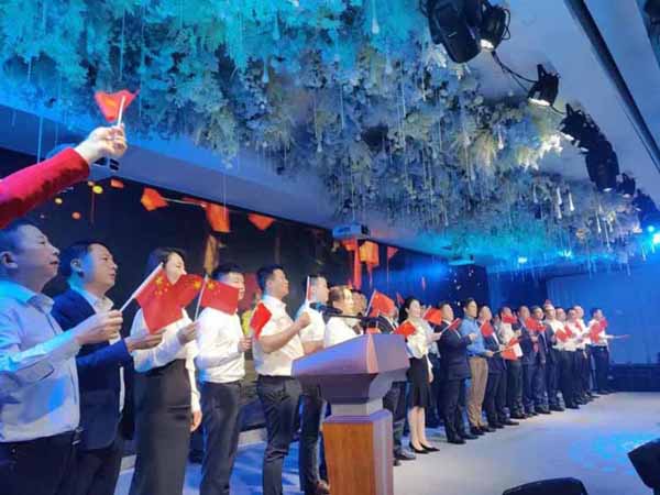 劉志仁等領(lǐng)導(dǎo)與青年企業(yè)家代表一同揮舞五星紅旗唱響《我和我的祖國》。在深情嘹亮的歌聲中,本次主題活動圓滿結(jié)束。